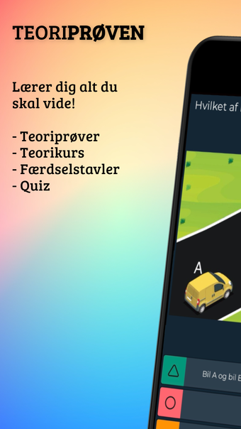 Teoriprøven - bil, sürücü belgesi almak isteyenler için kapsamlı bir eğitim uygulamasıdır. Uygulama, Færdselsstyrelsen tarafından belirlenen müfredat ve trafik yasalarına dayanarak hazırlanmıştır. Teorik kurslar ve pratik sınavlarla kullanıcıların bilgilerini geliştirmeyi hedefler. Kullanıcılar, uygulama içinde çeşitli teorik konularda bilgi edinebilir ve gelişimlerini takip edebilirler.